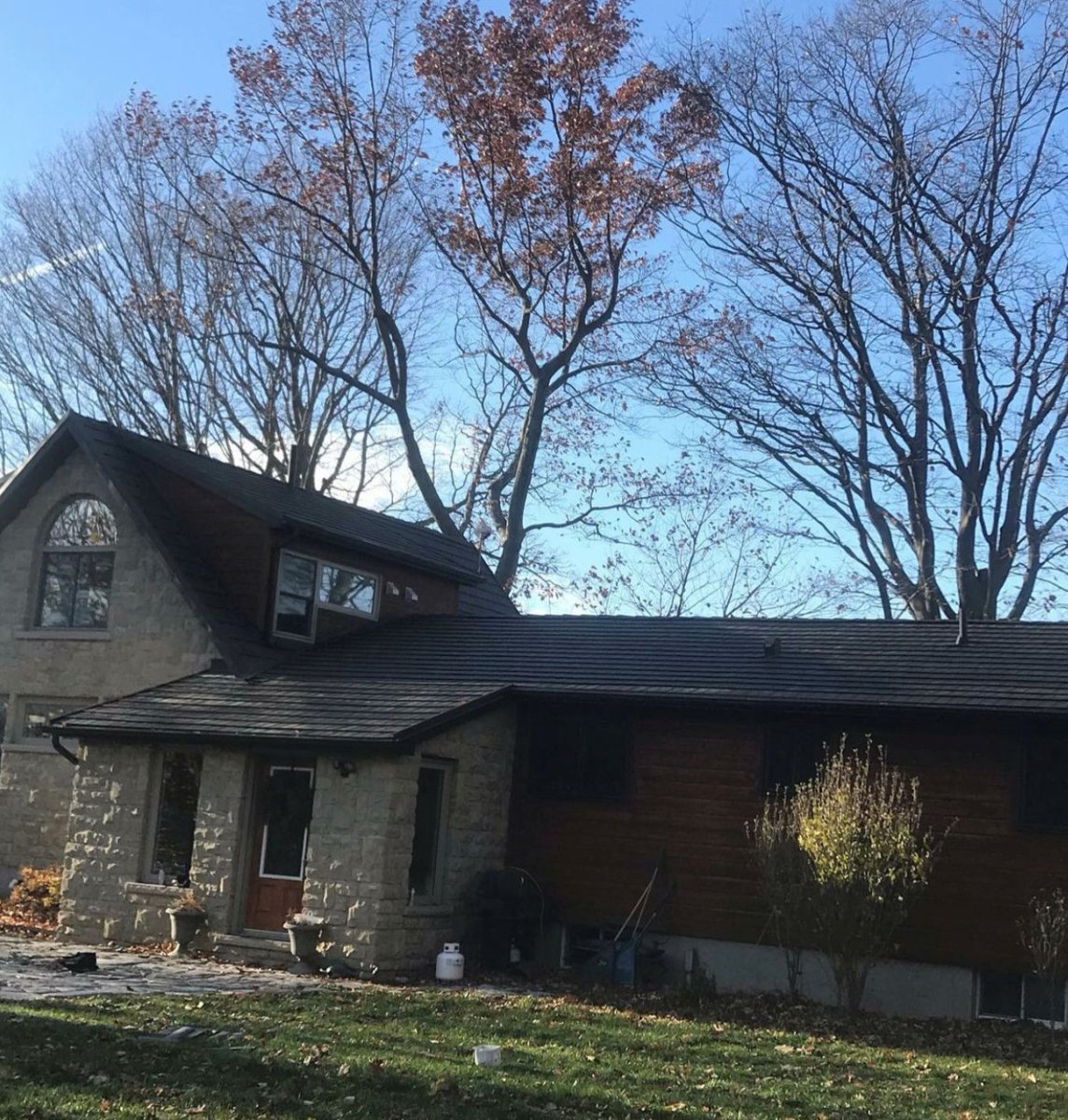 Burnished Slate Roof / 1 - Burnished slate burnished slate siding & light stone trim/roof.. Burnished slate is a painted product so you will not have these problems. Start by selecting a tab corresponding to the area you wish to color. Universal ridge flashing in burnished slate. Colors available for 26 gauge. Cmg's steel in burnished slate was used to complete this roof.