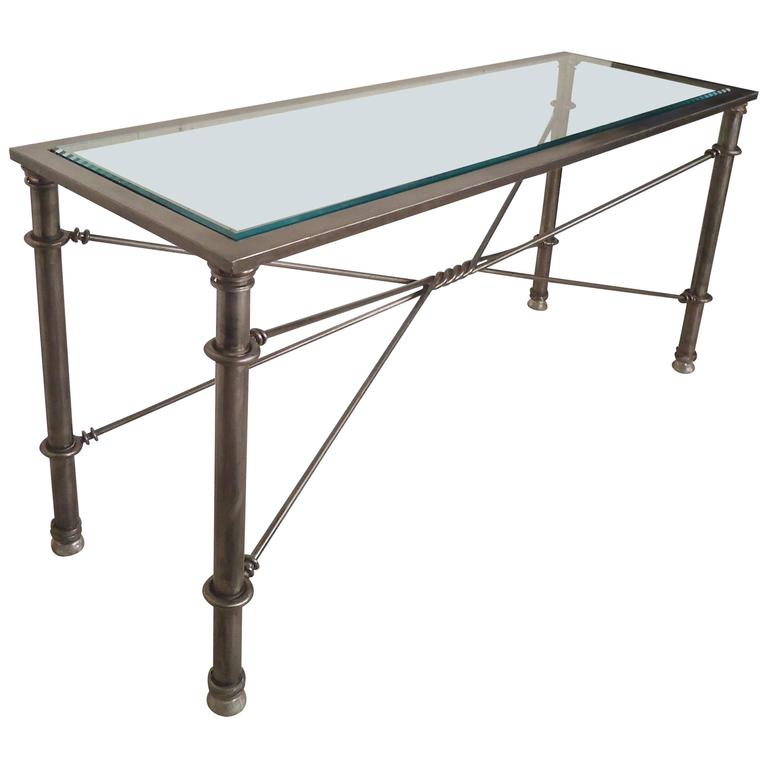 The tabletop features a pane of beveled glass for an bring streamlined design to your living room or entryway with this modern console table. Modern console table rectangular glass table top iron base with crisscross diamond designread more. Up above, the tempered glass top rounds out the design with another sleek touch. On one hand, the glass (the transparent kind) allows a piece the console tables we've selected have modern designs and they stand out with their shapes, simplicity the top is made of clear glass. Shop for metal console tables at crate and barrel. Shop for glass console tables online at target. Our stunning range of glass console tables include all glass versions glass and metal and glass and wood. Find new metal console tables for your home at. We offer a bespoke size service contact our office for more information. Chelsea minimal metal and glass console table available also in an entirely metal version for an industrial look. Shop with afterpay on eligible items. Buy products such as evelyn&zoe contemporary metal console table with glass top at walmart and save. Popular luxury glass console table brands include.